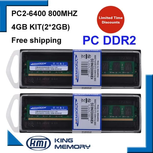 Is Better Than KEMBONA 4GB 2x2GB PC2-6400 DDR2 800Mhz 4g 240pin DDR2 Desktop Memory Desktop Module RAM Free Shipping